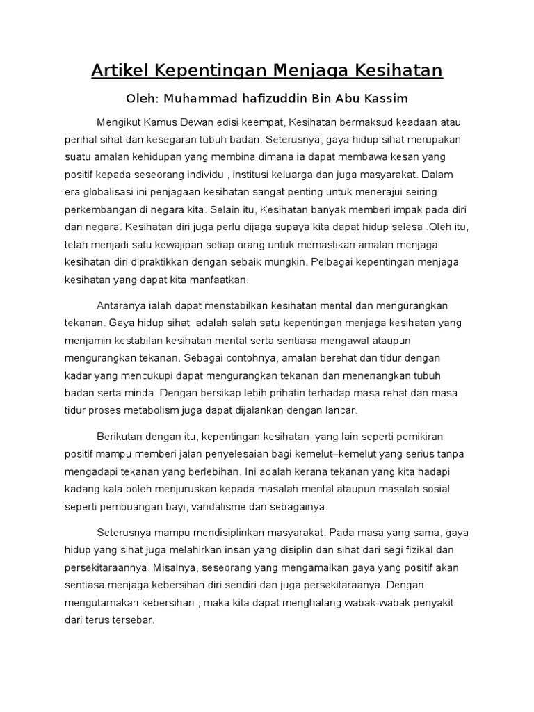 Kepentingan Menjaga Kesihatan Dan Kebersihan Diri